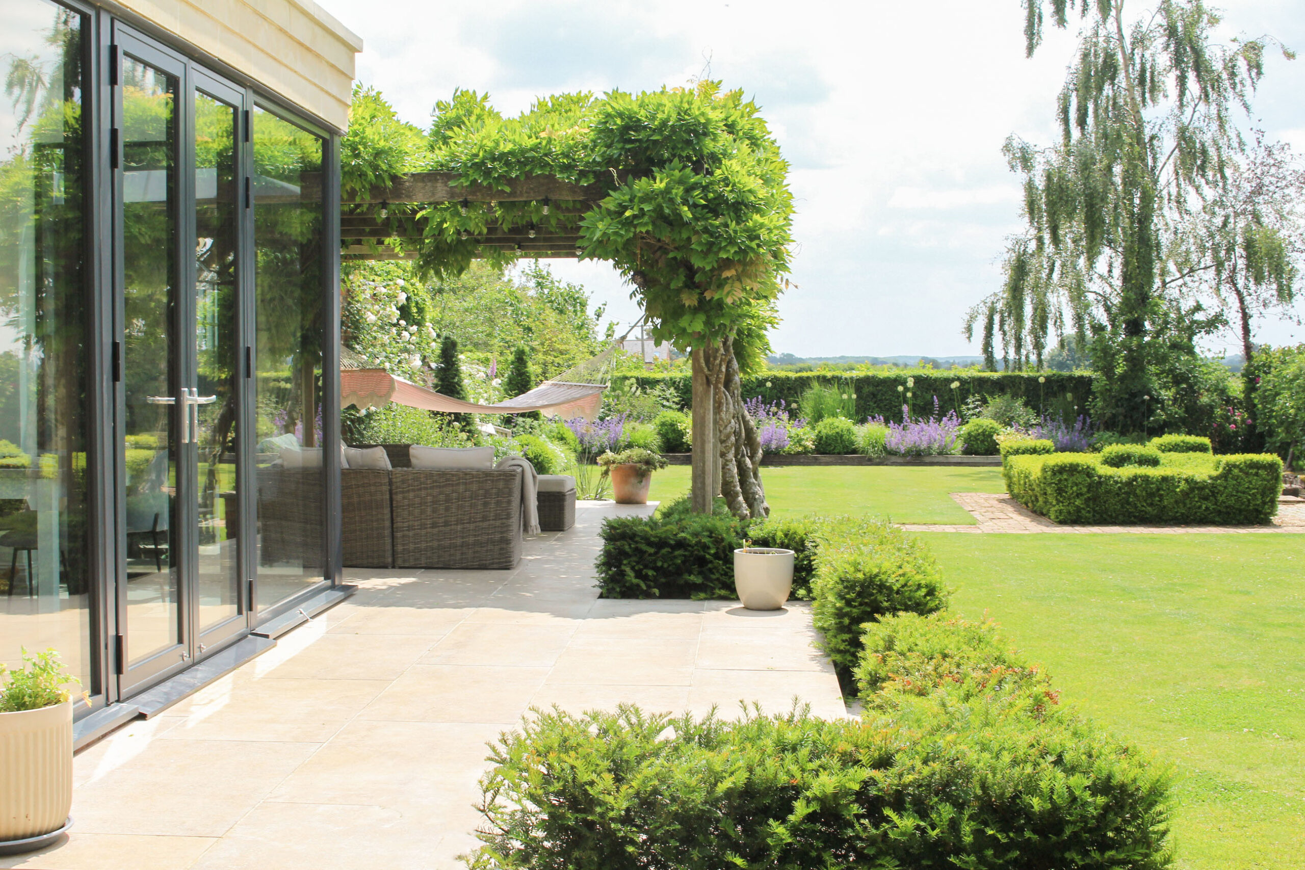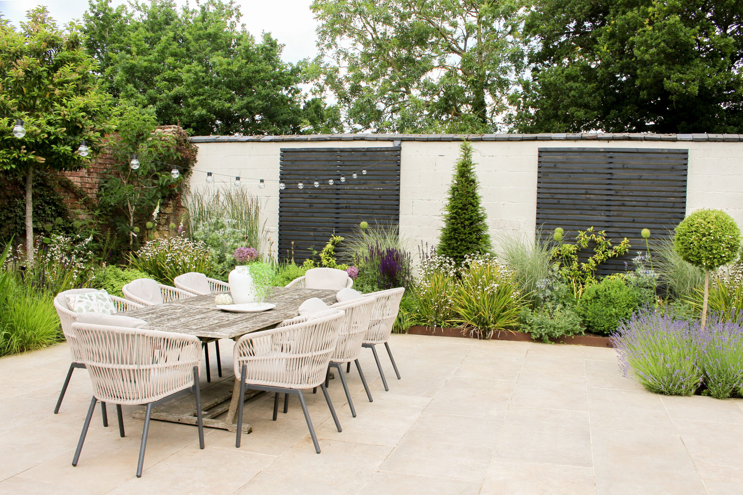 This garden now offers a perfect balance: crisp, modern features sit comfortably alongside natural textures and traditional touches — a peaceful, stylish retreat in a truly idyllic location.